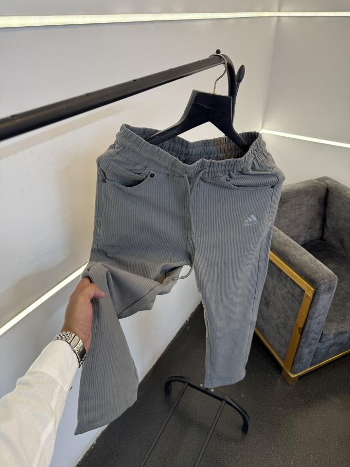 Home Track Pants Adida s grey imported straight fit courduroy fabric track pant