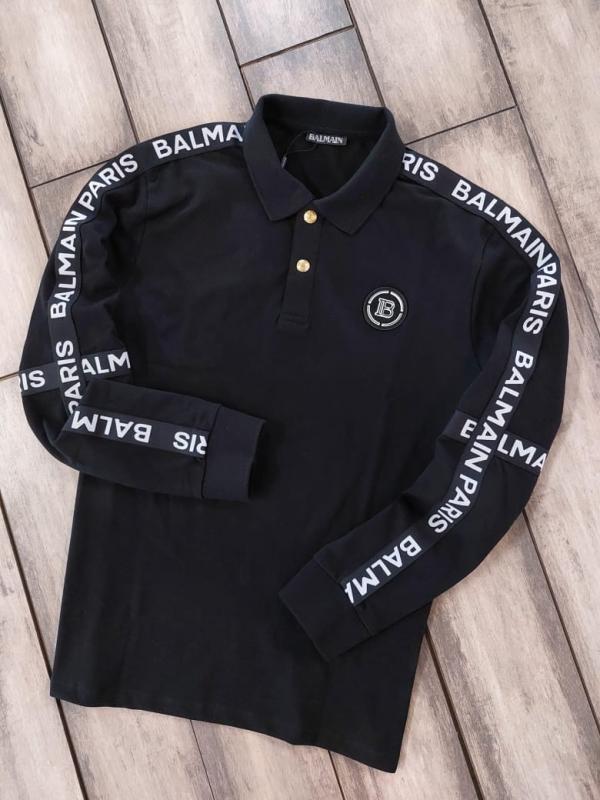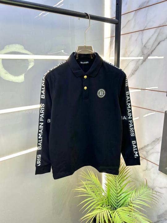 Home T-Shirts Balmai n Paris Black Polo Neck Full Sleeves Premium Collar T-shirt F3454-B4
