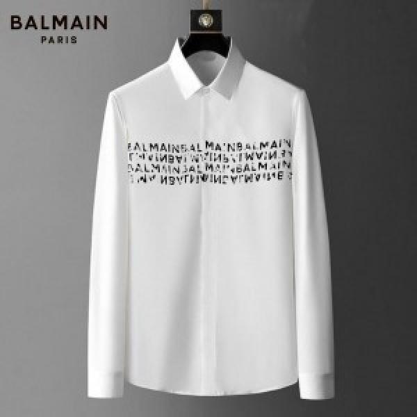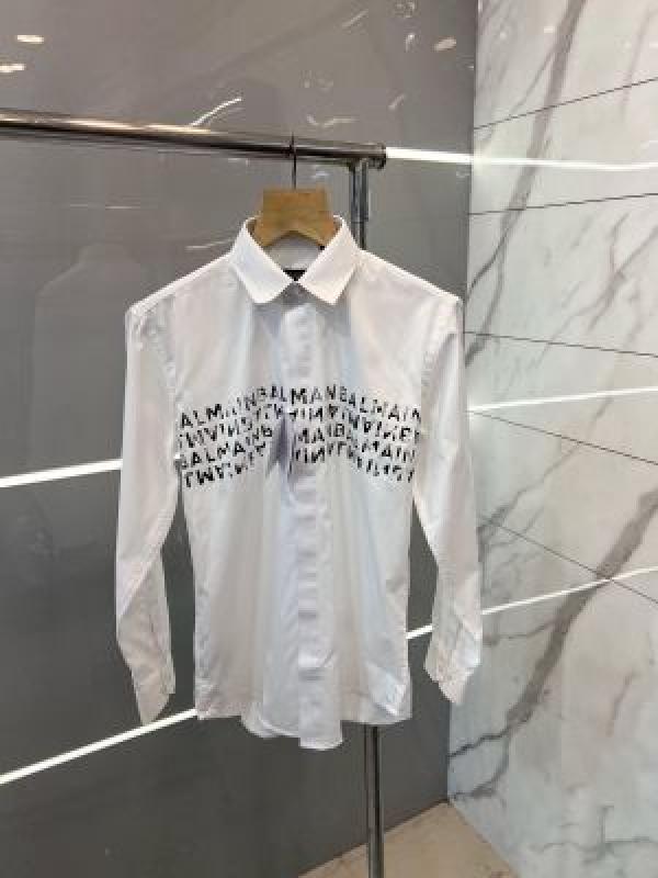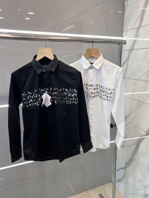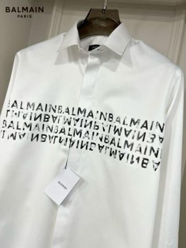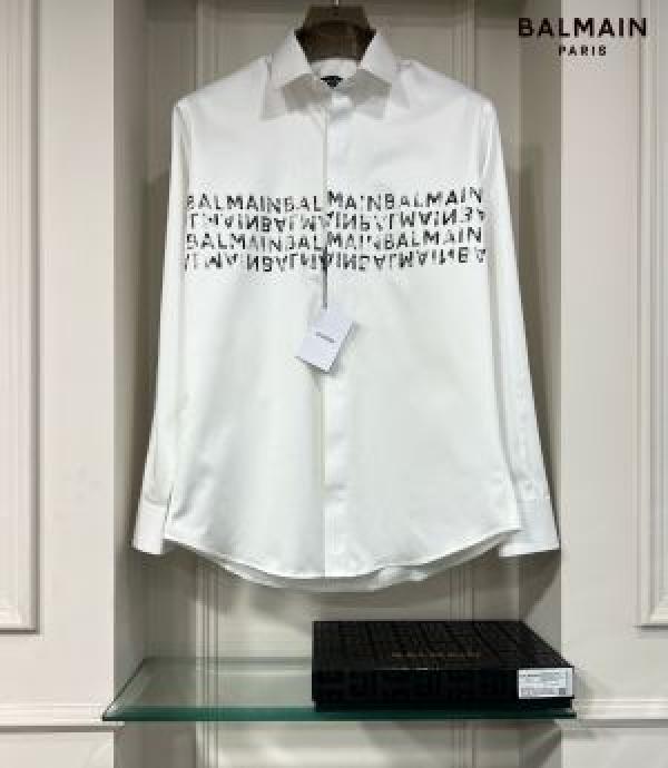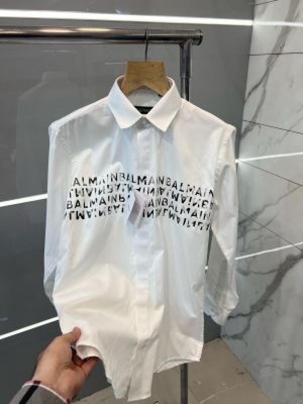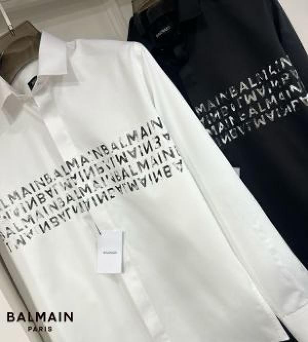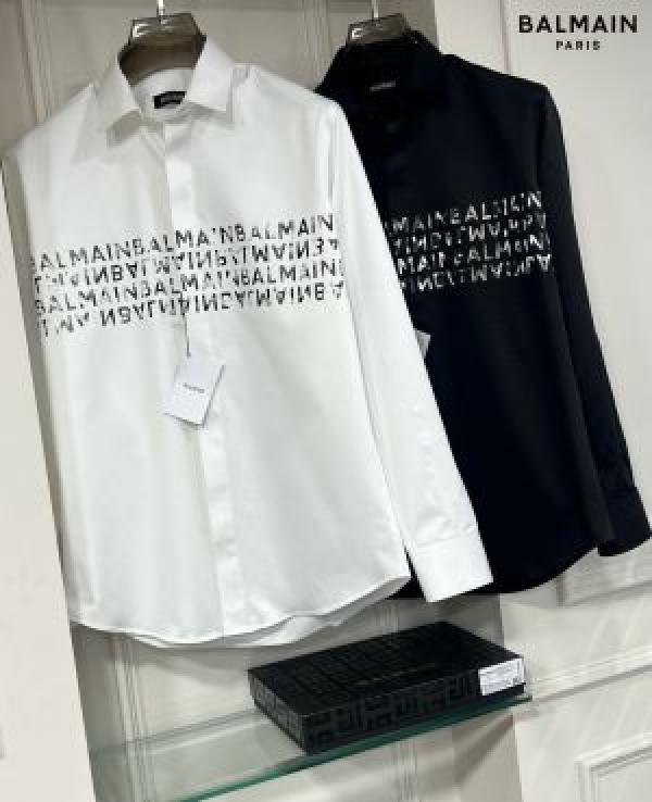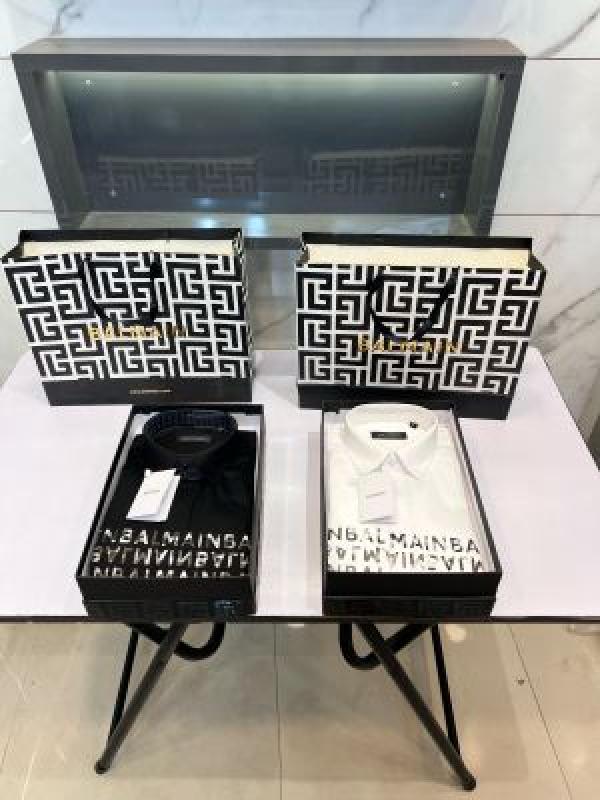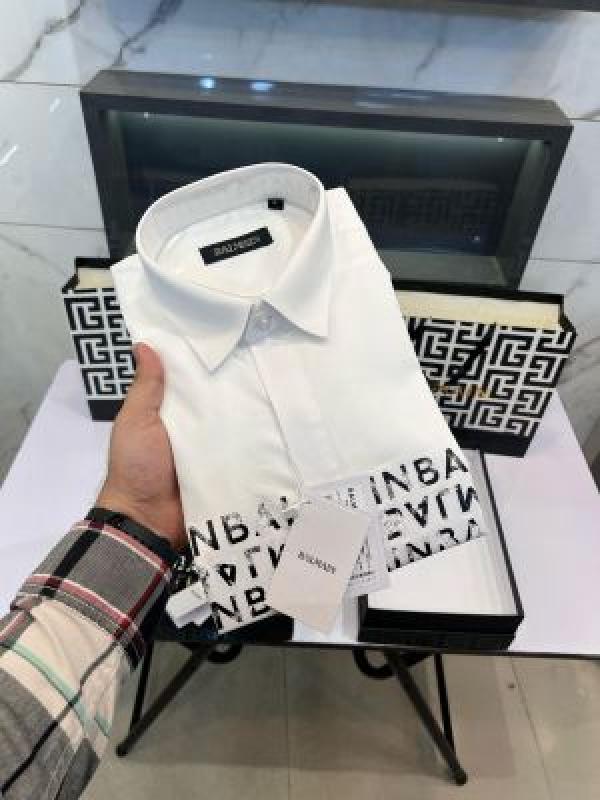 BALMAIN_PARIS_WHITE_PATCH_LOGO_PRINT_PREMIUM_IMPORTED_SHIRTS_WITH_BOX_PACKING_AND_CARRY_BAG_(1573)