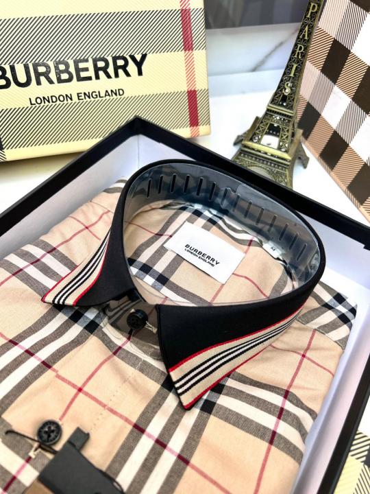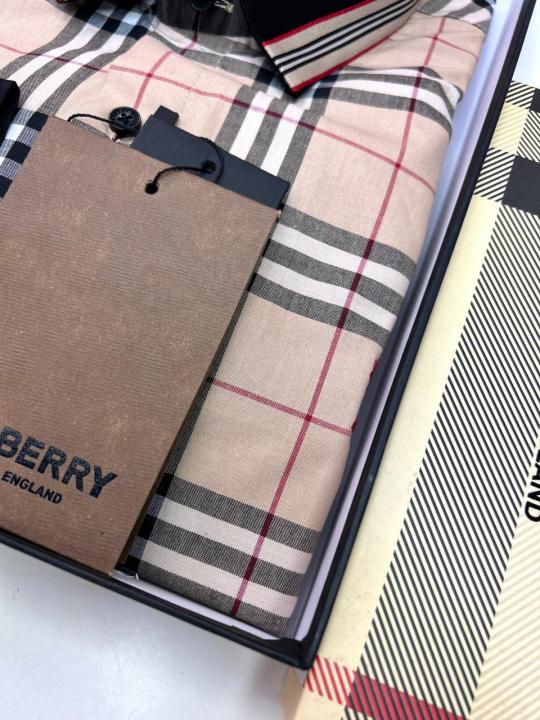Home Shirts Burberr y Checks Embroidery Logo Beige Premium Shirt With Brand Box Packing And Carry Bag F3542-BE