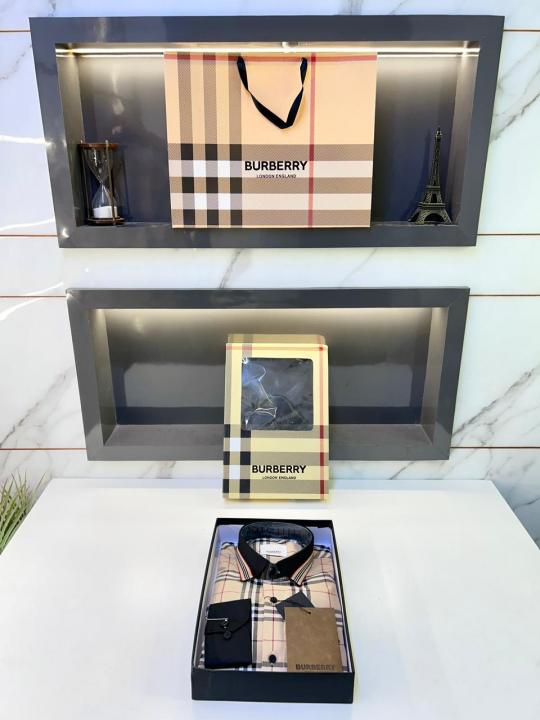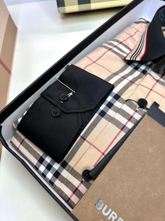 Burberr y Checks Brown Embroidery Logo Premium Shirt With Brand Box Packing and carry bag F3363-BR