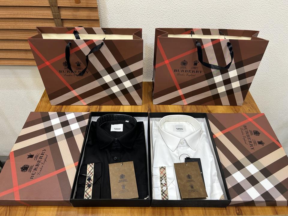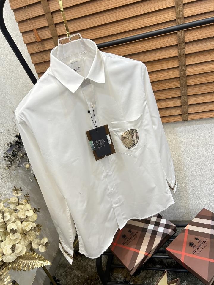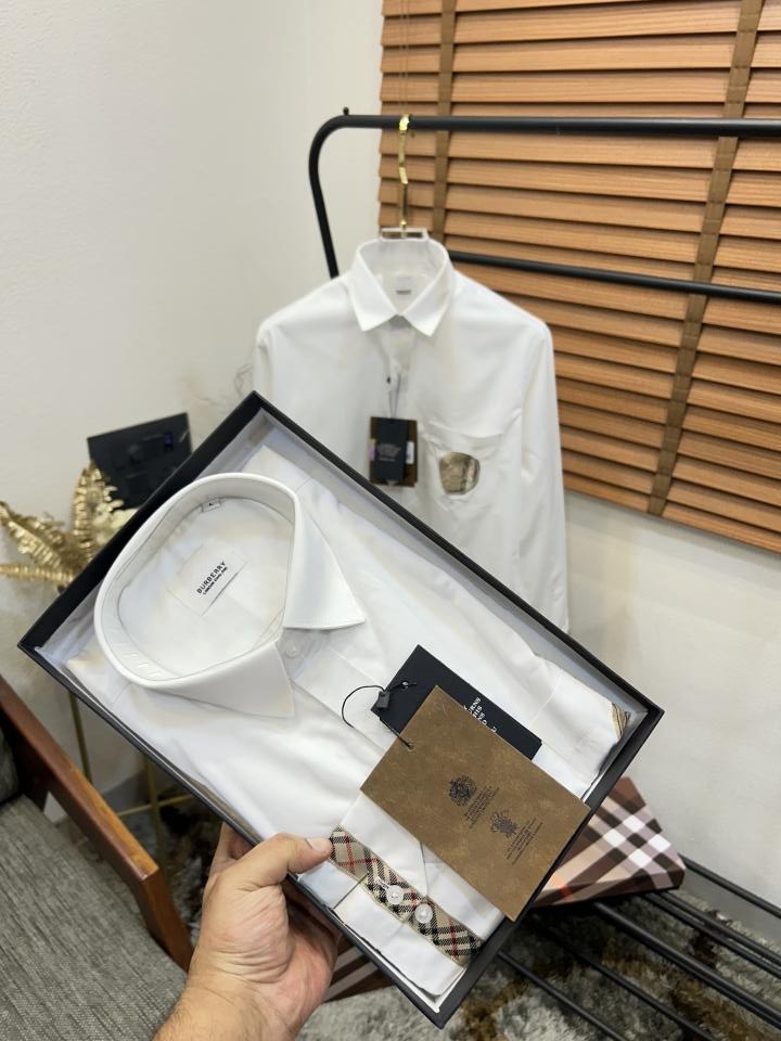 Burberr_y Pocket Monogram Embroidered Cuff Signature Patched Imported Partywear Shirth With Og Box & Bag