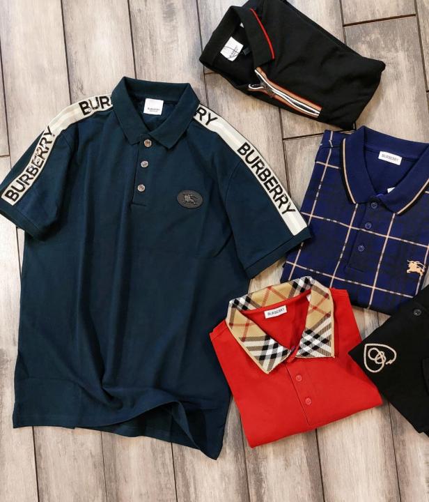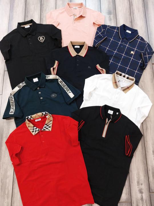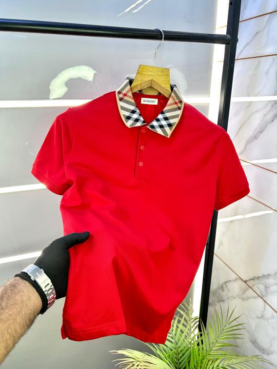 Home T-Shirts Burberr y Red Premium Collar Neck Polo T-shirt F3258-RE