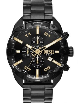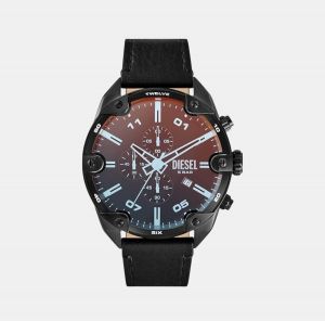 Diese_l Black Spiked Chronograph Black Leather Watch