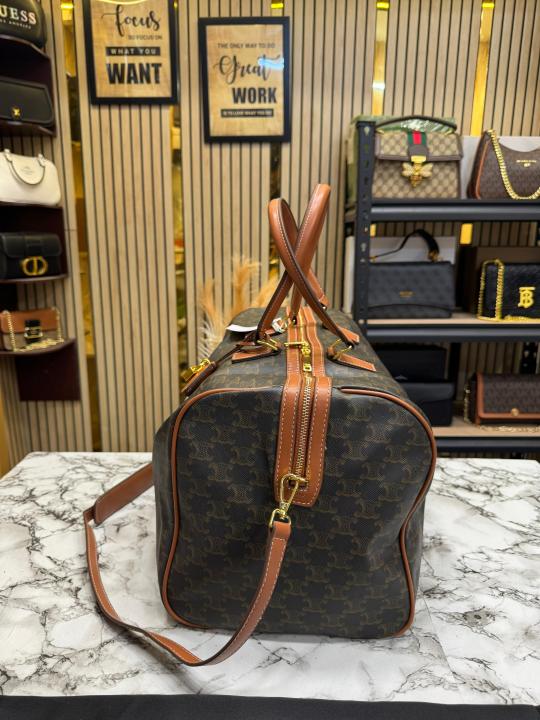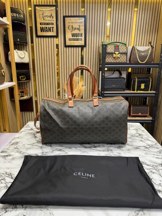Celine Premium Quality Triomphe Canvas Duffle Travel Bag With Dust Bag (Brown)