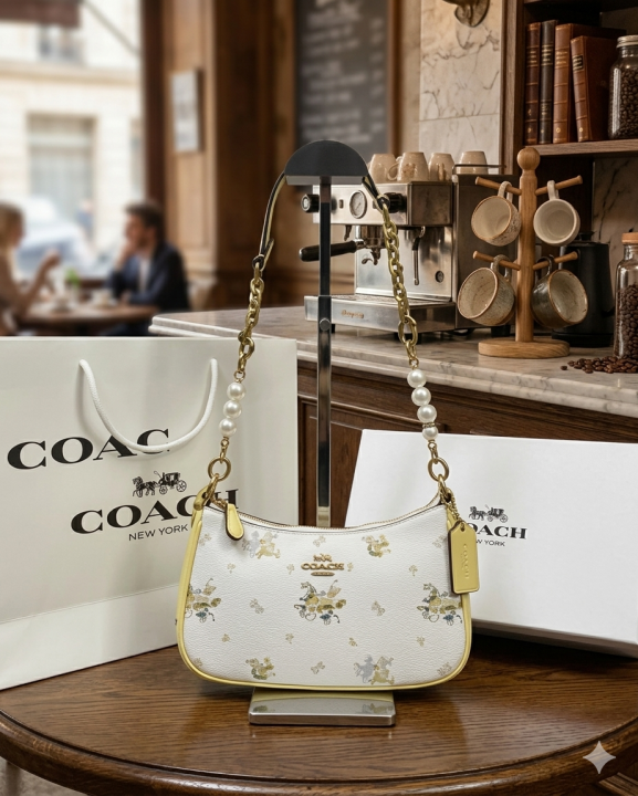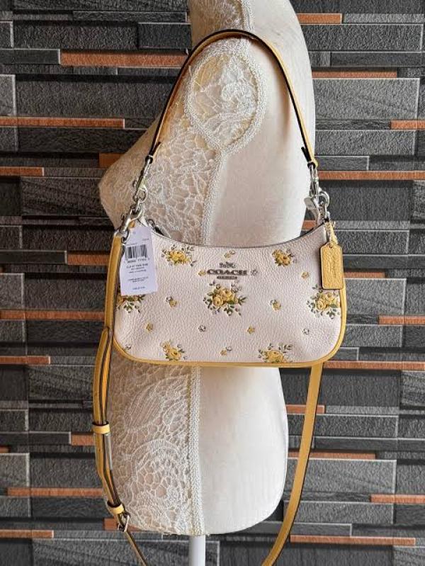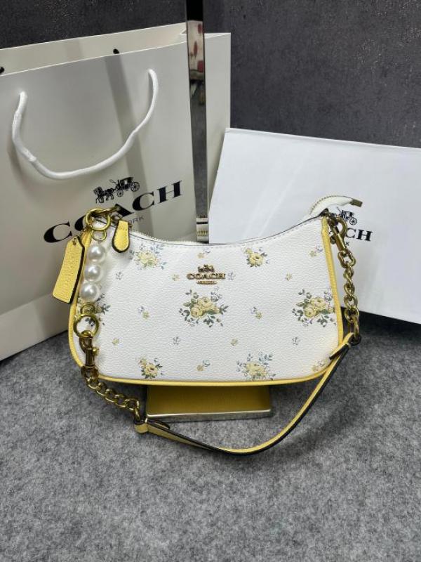 Coach_ Teri Shoulder Bag in Pebble Leather with a Floral Print Bag With Double Box premium quality