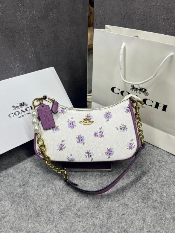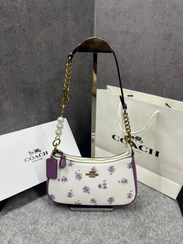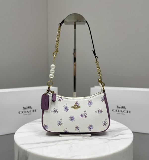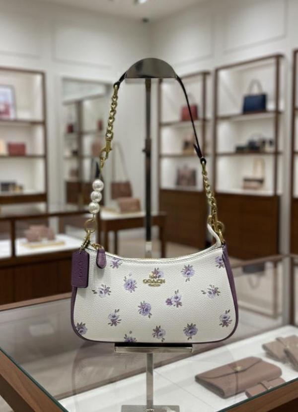 Coach_ Teri Shoulder Bag in Signature Canvas with a floral print and purple trim Bag with Double Box premium quality