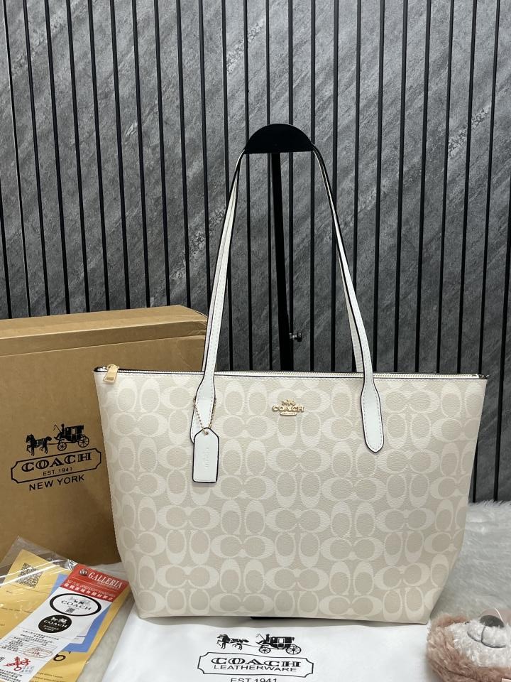 Coach_White_Fiona_Top_ZipperTote_With_OriginalBox_TeddyDisneyCharm_DustCoverPacking