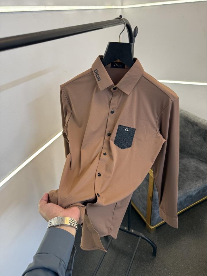 Home Shirts Dio r Turkish imported shirt with brand patch on chest brown