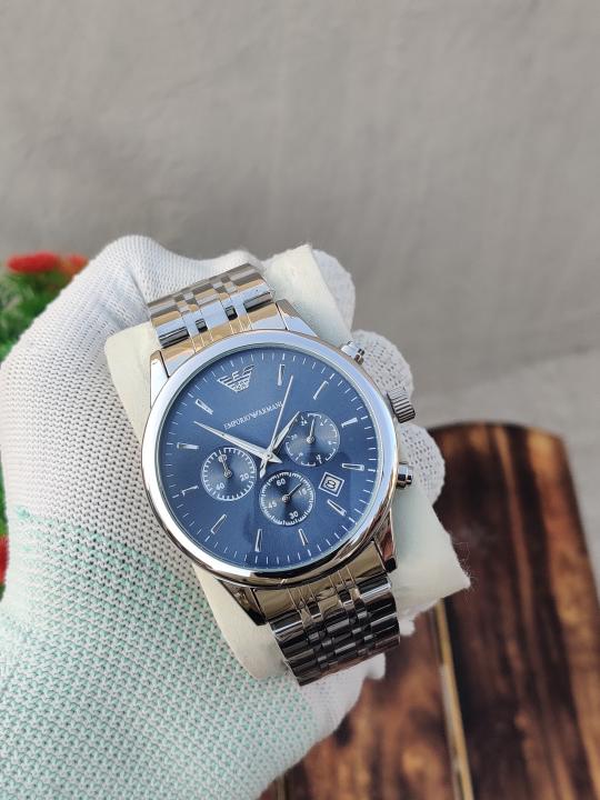 EMPORIO ARMANI CHRONO SILVER BLUE DIAL