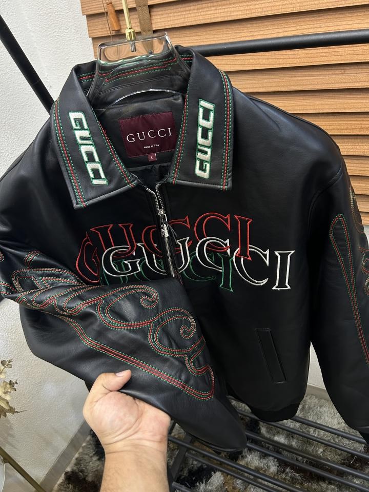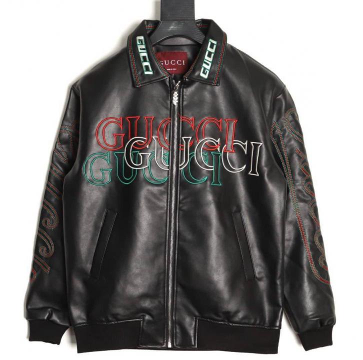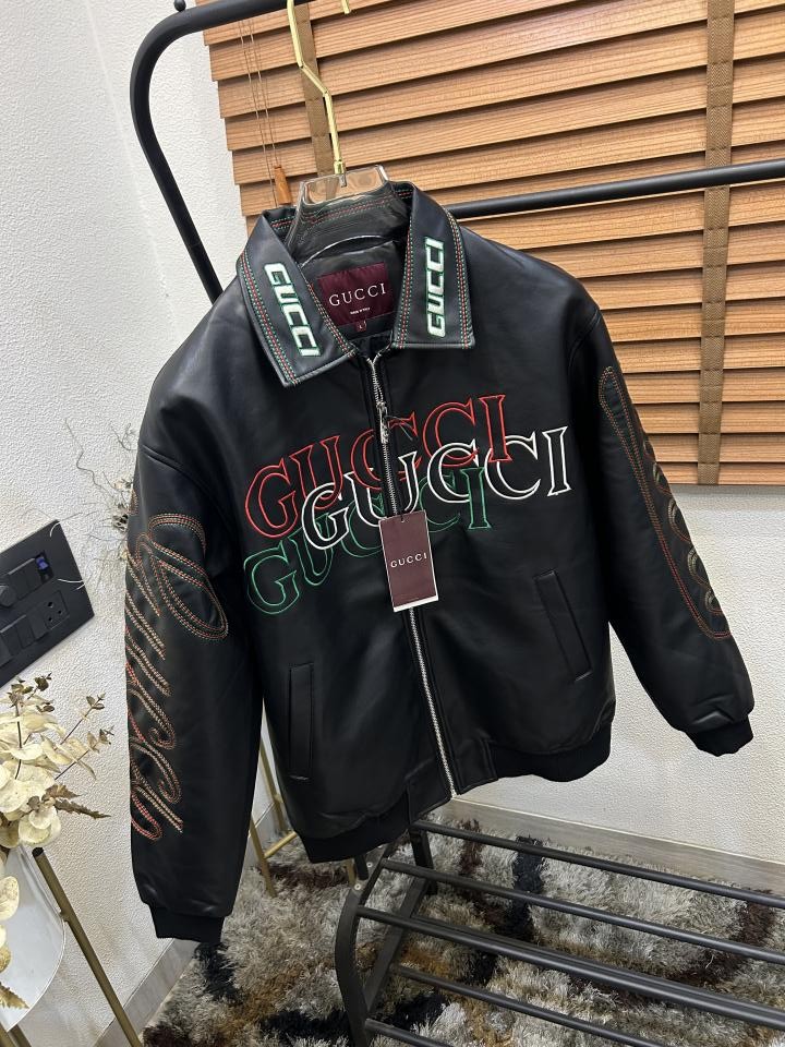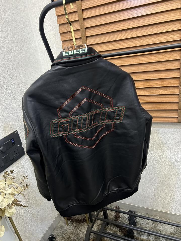Gucc_i Embroidered Exclusive Imported Premium Leather Designer Jacket (DN 614)