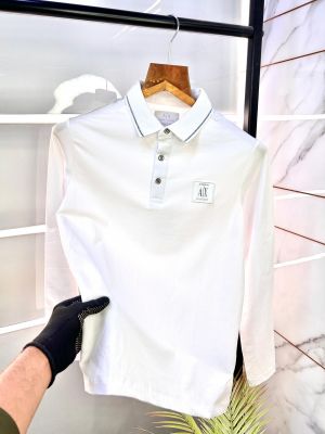 Sale Arman_i Exchange White Full Sleeves Polo Neck Premium Collar T-shirt F2050-WH