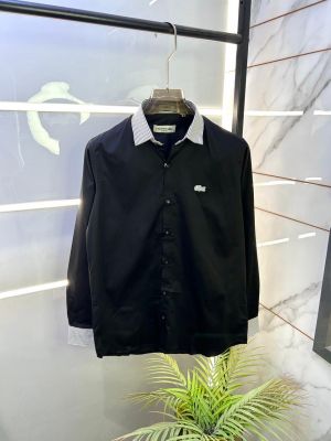 Lacost e Logo Black Premium Oxford Lycra Shirt F3224-BL