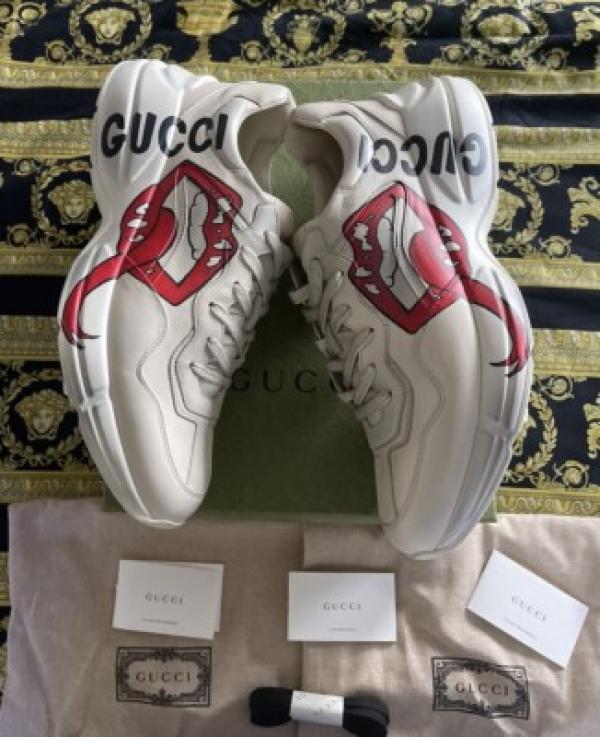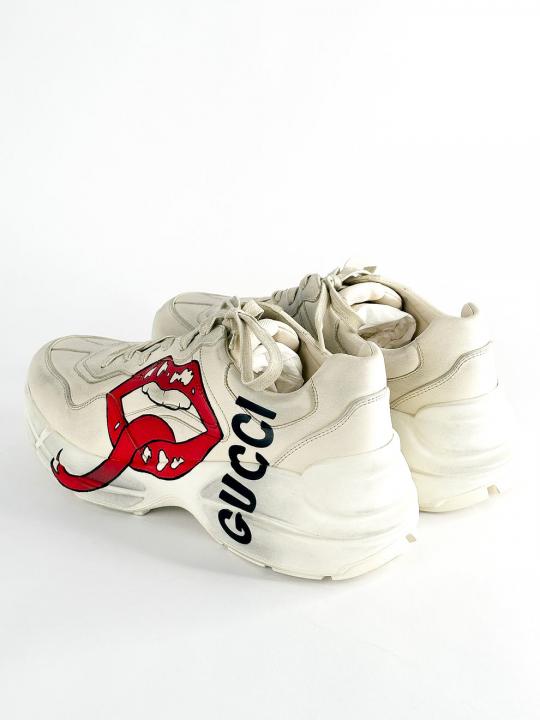 Gucc.i Rhyton Leather Sneakers with Lip Print