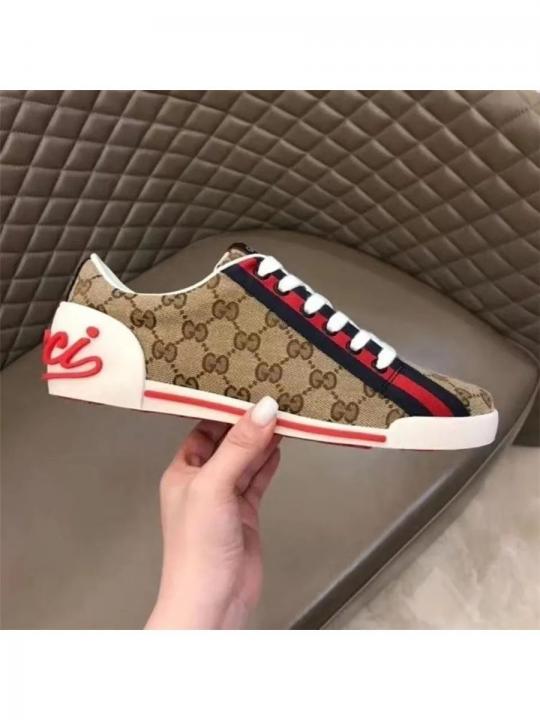 GUCC_I VINTAGE EMBROIDERED GG LOGO CREAM PREMIUM SNEAKER