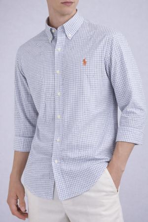 Ralph_Lauren Chest Logo Full Sleeves checks shirt sky grey