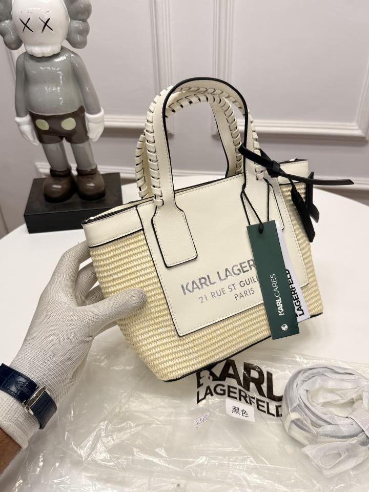 Karl Lagerfeld Small Rue st-guillaume raffia Leather Totebag with dustbag tags etc 245