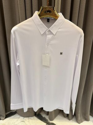 Hermes Chest Metal Logo Japanese Lycra Full Sleeves Shirt White
