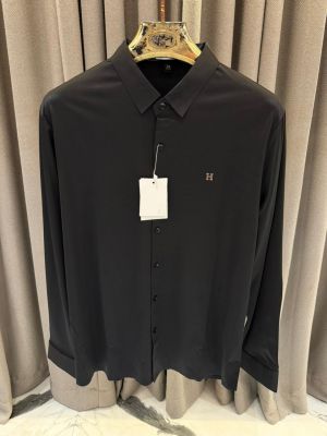 Hermes Chest Metal Logo Japanese Lycra Full Sleeves Shirt Black