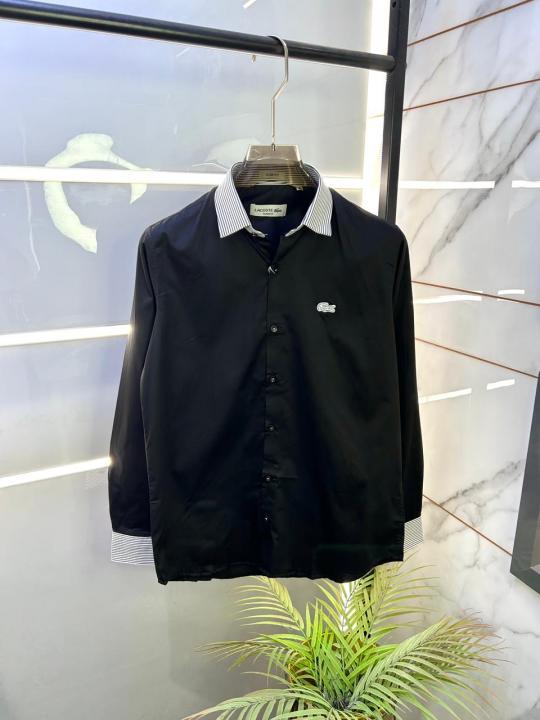 Home Shirts Lacost e Logo Black Premium Oxford Lycra Shirt F3224-BL