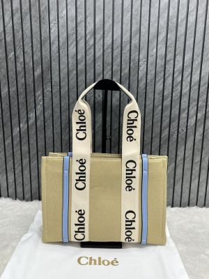 Chloe Blue Medium Canvas Woody Tote With Dust Cover Blue