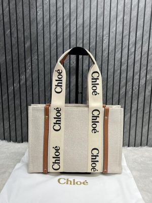 Chloe Brown Medium Canvas Woody Tote With Dust Cover Brown