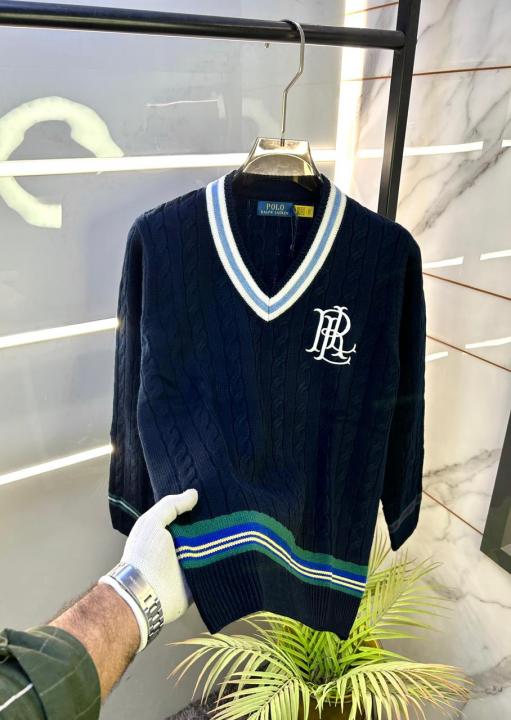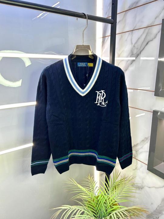 Home Premium sweatshirts Ralph_Lauren Navy Imported knitted Super Premium V Neck Pullovers F3150-NY