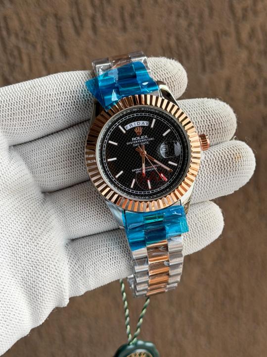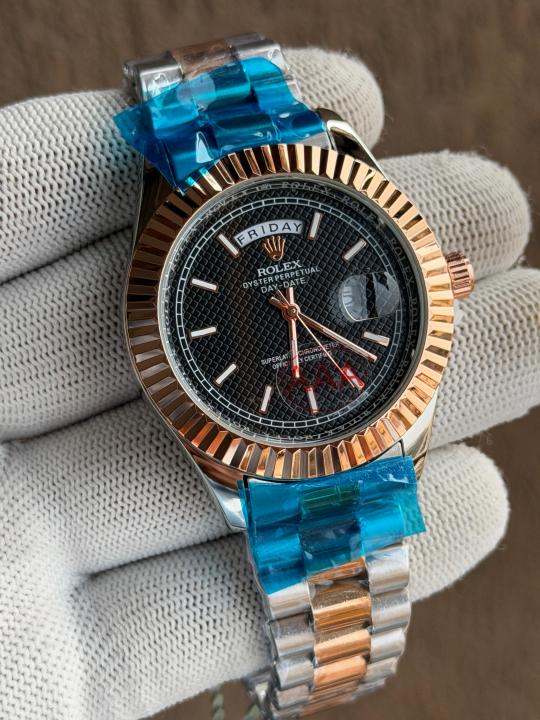 ROLEX DAY DATE RG TWOTONE BLACK TEXTURE DIAL
