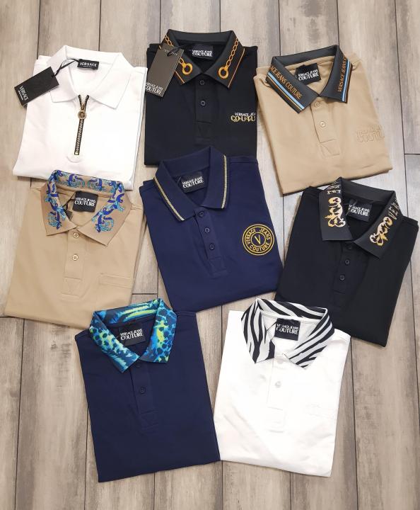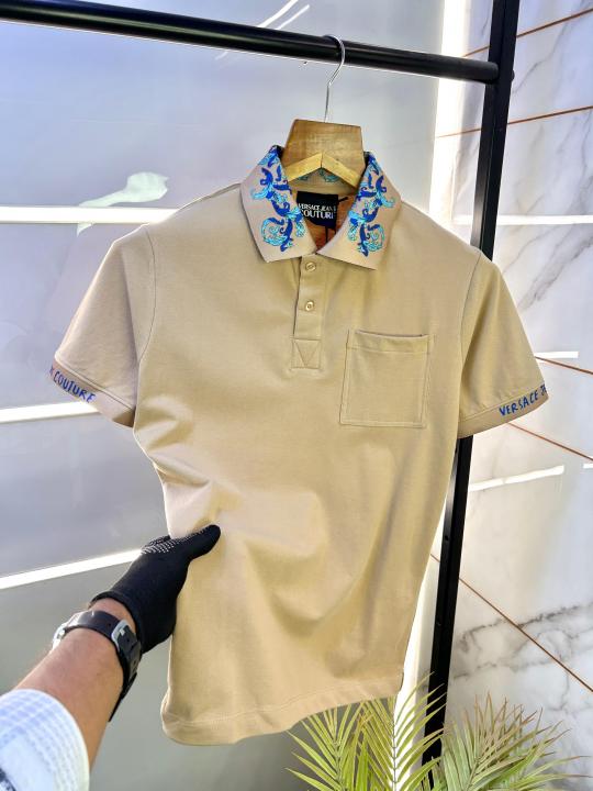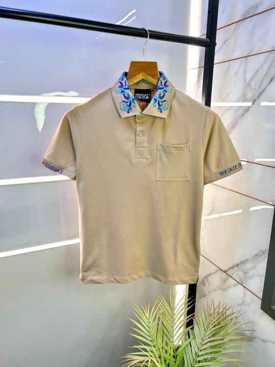 Home T-Shirts Sale Versace Beige Imported Collar Neck Premium Polo T-shirt F2510-BE2