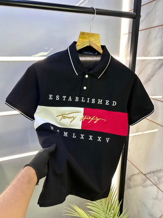 Home T-Shirts Tommy_Hilfiger Black Embroidery Print Premium Polo T-shirt F2459-BL
