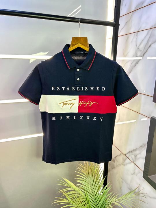 Home T-Shirts Tommy_Hilfiger Navy Embroidery Print Premium Polo T-shirt F2459-NY